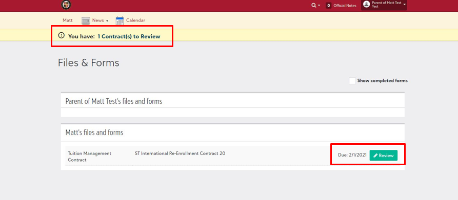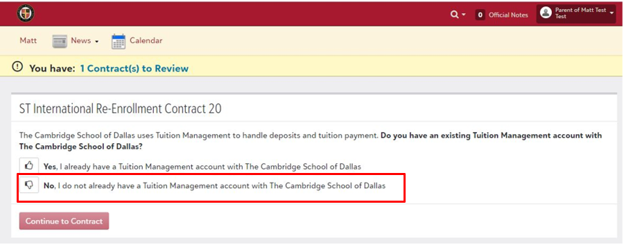 Ensure signature on contract to submit properly. If the contract is submitted properly, you should be automatically enrolled into your Tuition Management account for paying all school tuition and fees.