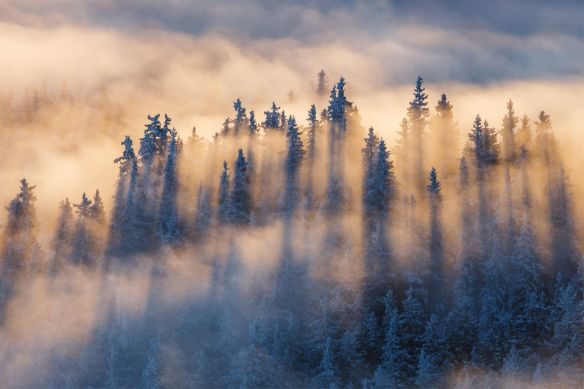 The second stanza continues the imagery of a winter’s day, which by now seems comparable to knowing God, who is “shrouded, wrapped, or tucked, say, within a veil of wood smoke and low cloud, and decidedly gray, but lined as well with intermittent, slanted rays of startlingly brilliant, impossibly white light.” Using an ancient emblem, God is the sun—the source of light that can be glimpsed, on occasion, despite the obscuring clouds. Truth shines through mystery. In our present lot as slow pilgrims, we never see the fiery orb of the sun in all of its intensity and brilliance because our eyes would burn. Like Moses, we hide our face from the light of the burning bush (Ex. 3:1-6). Like Peter, James, and John on the Mount of Transfiguration, we fall on our faces when the voice speaks from the bright cloud that overshadows us (Mt. 17:1-13). Only a fool tries to make a tent for the transfigured Christ: we cannot house God in our systems of theology. He is always too grand for any shelter that we erect. All we can do, like John the Baptist, is “bear witness about the Light” (Jn. 1:8), ever mindful that this “startlingly brilliant, impossibly white light” is strained through clouds of unknowing.