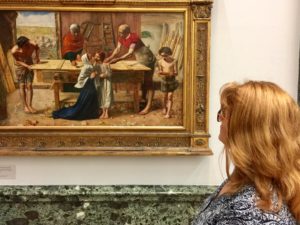 For my first gallery visit, I looked at a Pre-Raphaelite painting at the Tate Britain called Christ in the House of His Parents by John Everett Millais. I am a huge fan of the Pre-Raphaelite brotherhood movement founded in London in 1848. They were opposed to the Royal Academy’s promotion of the ideal as exemplified in the work of Raphael. They were also in revolt against the triviality of the immensely popular genre painting of the time.
