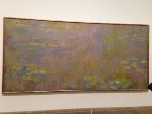 During my second gallery, the Tate Modern, I saw Monet’s Water-Lilies juxtaposed with Rothko’s Red on Maroon. The exhibit explored how Rothko studied Monet and sought to work on a large scale so the viewer could become immersed in the rich color of the painting.